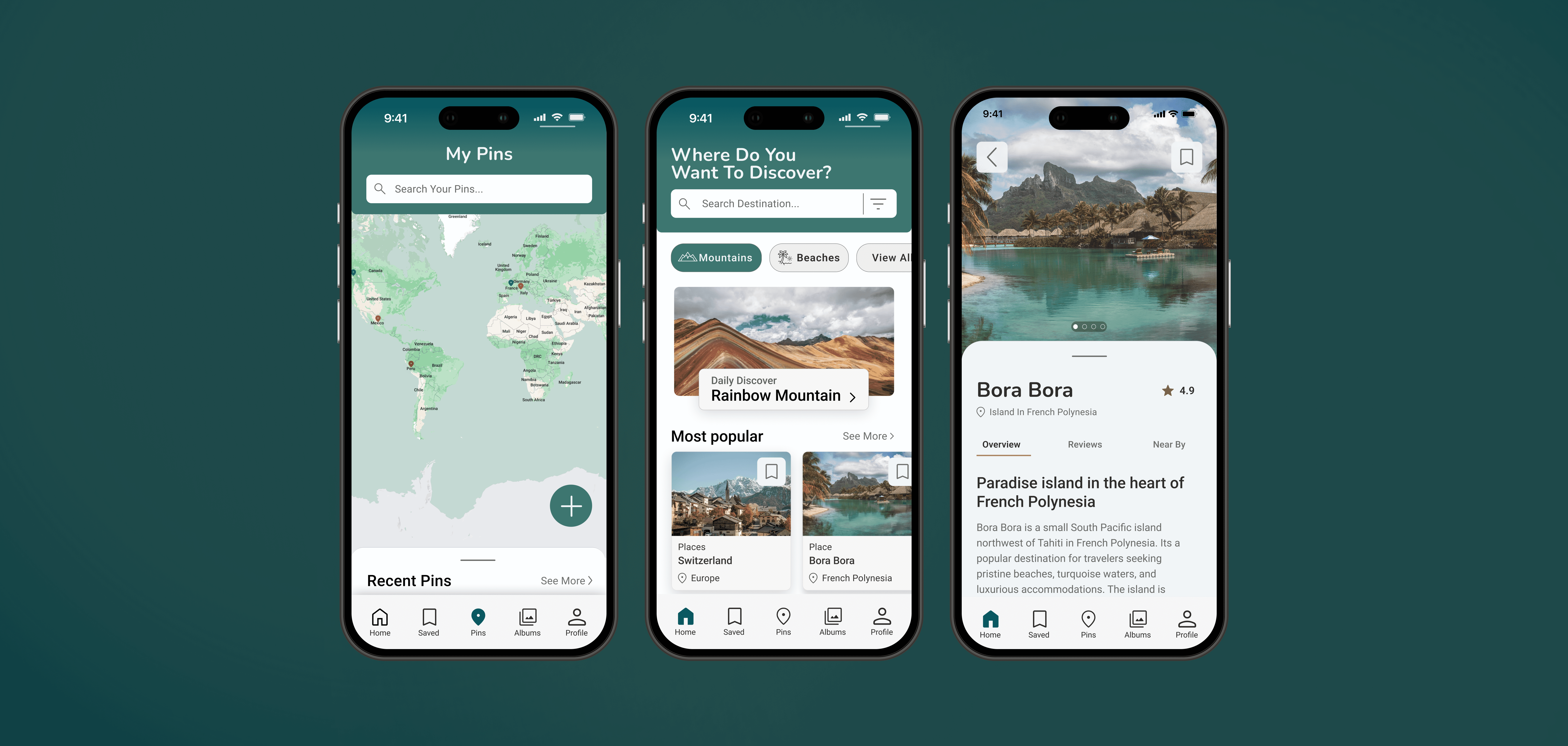 Personal project: Designed a B2C mobile app to help users explore the world and keep track of their travels.