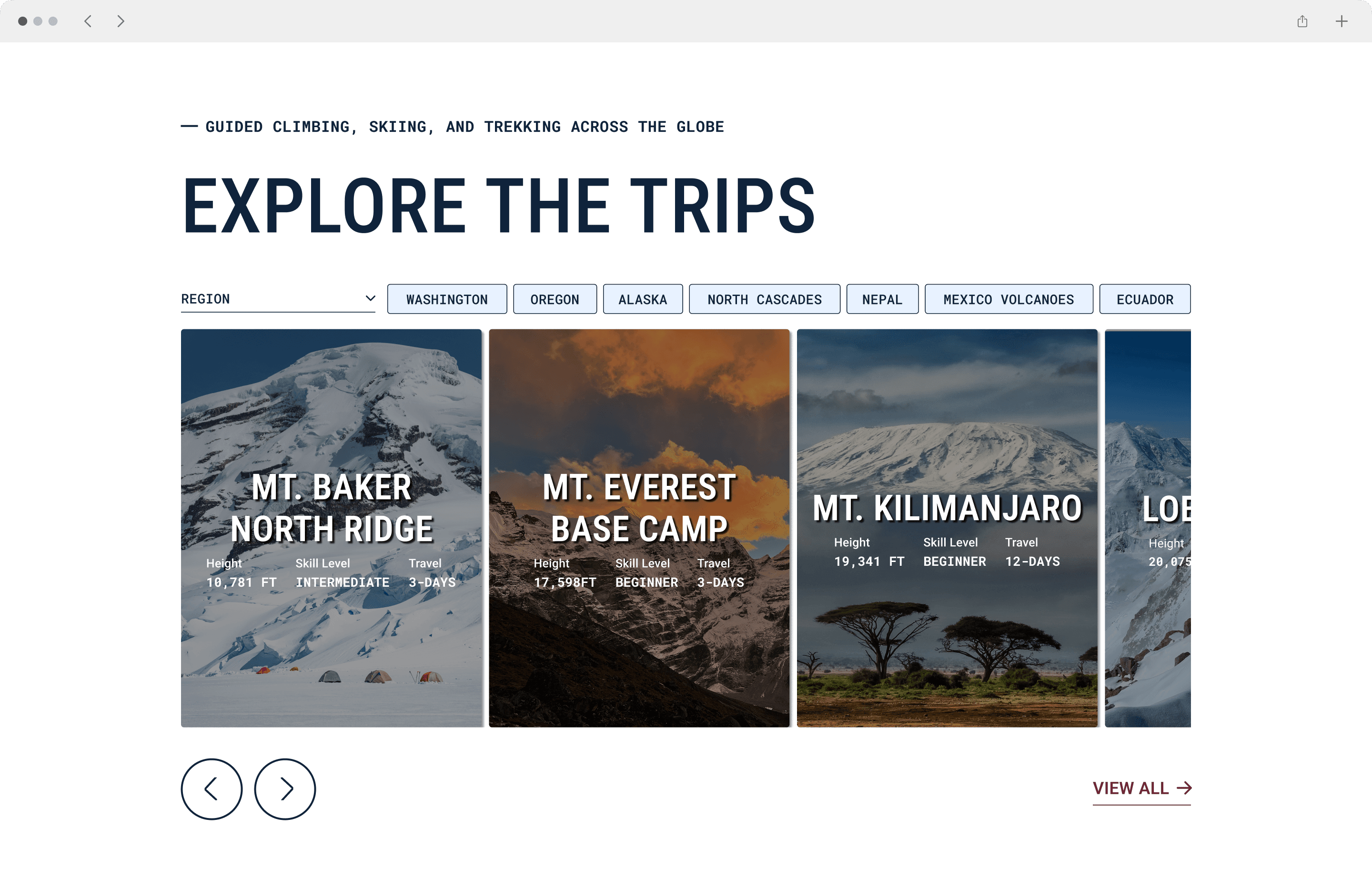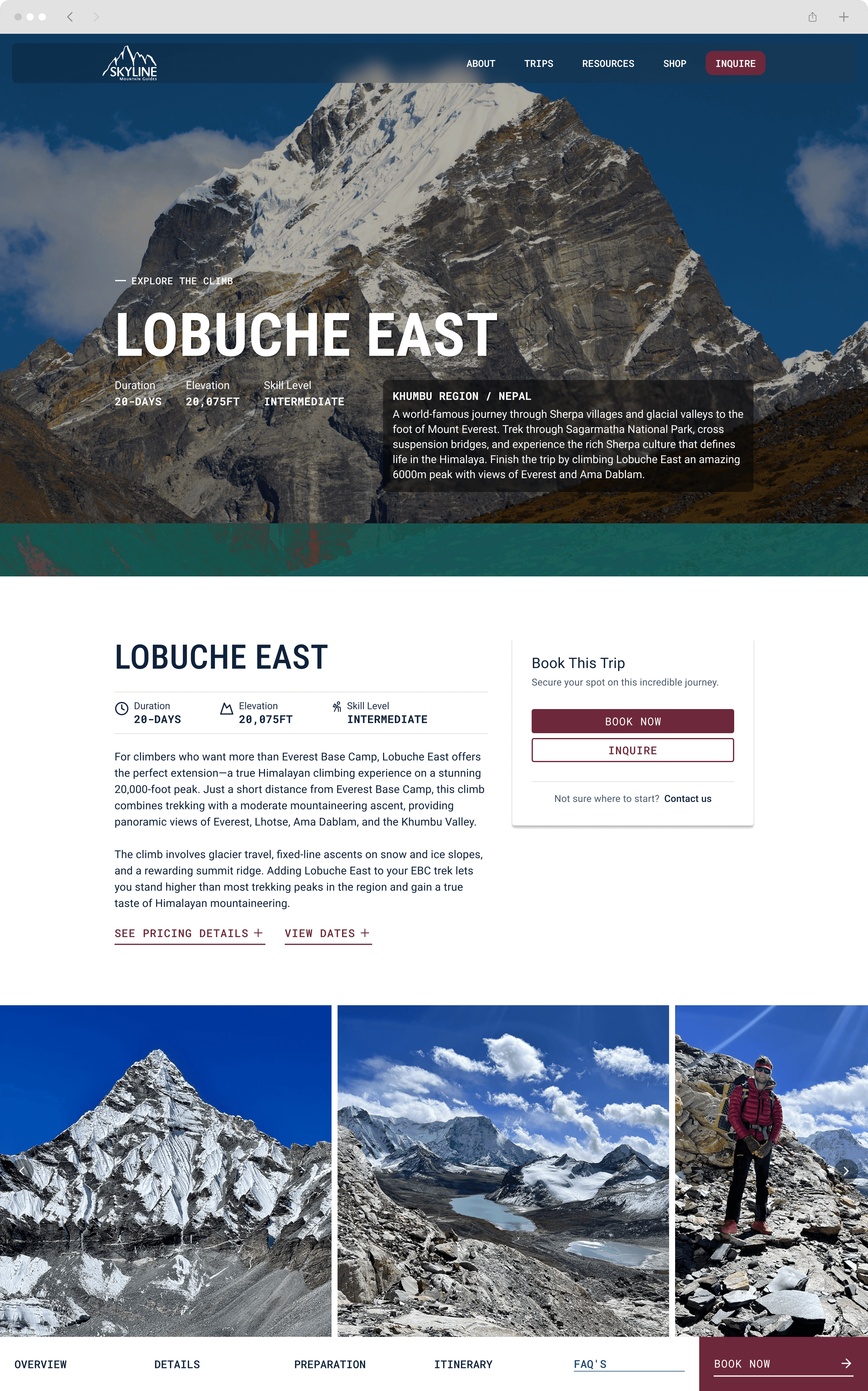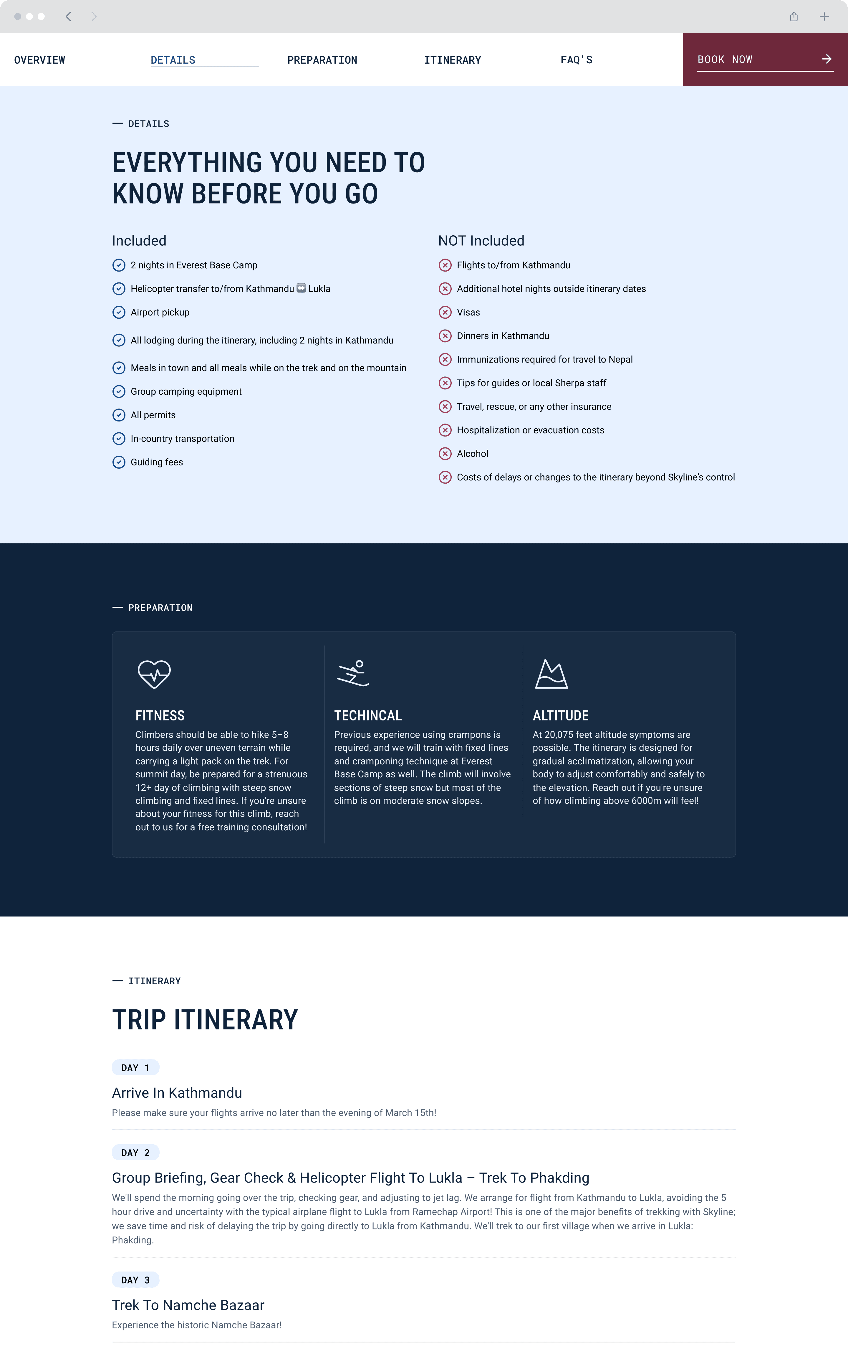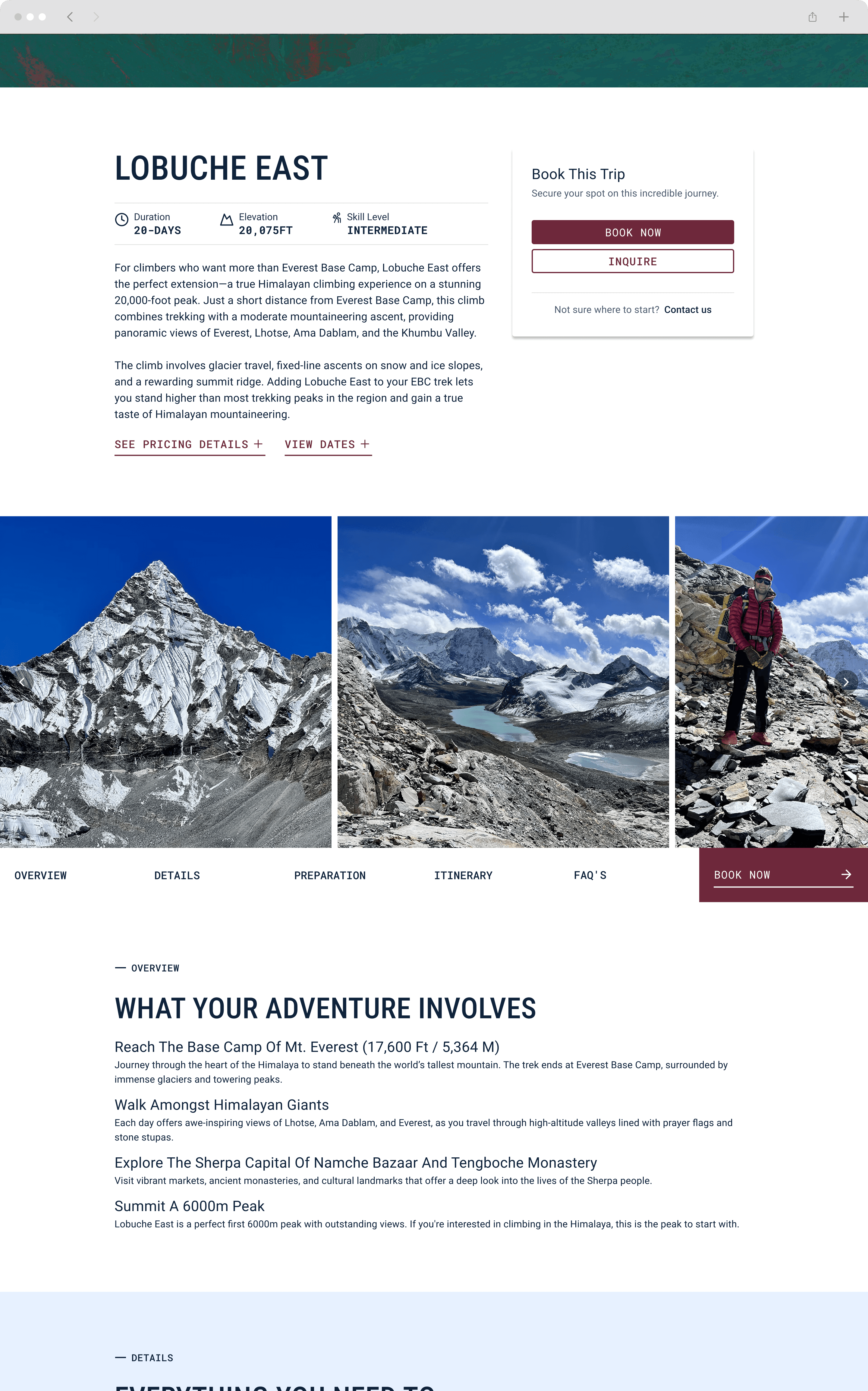 A guided climb is a high-trust, high-consideration purchase. Users need clear trip fit, decision-ready details, and a confident next step to book.
