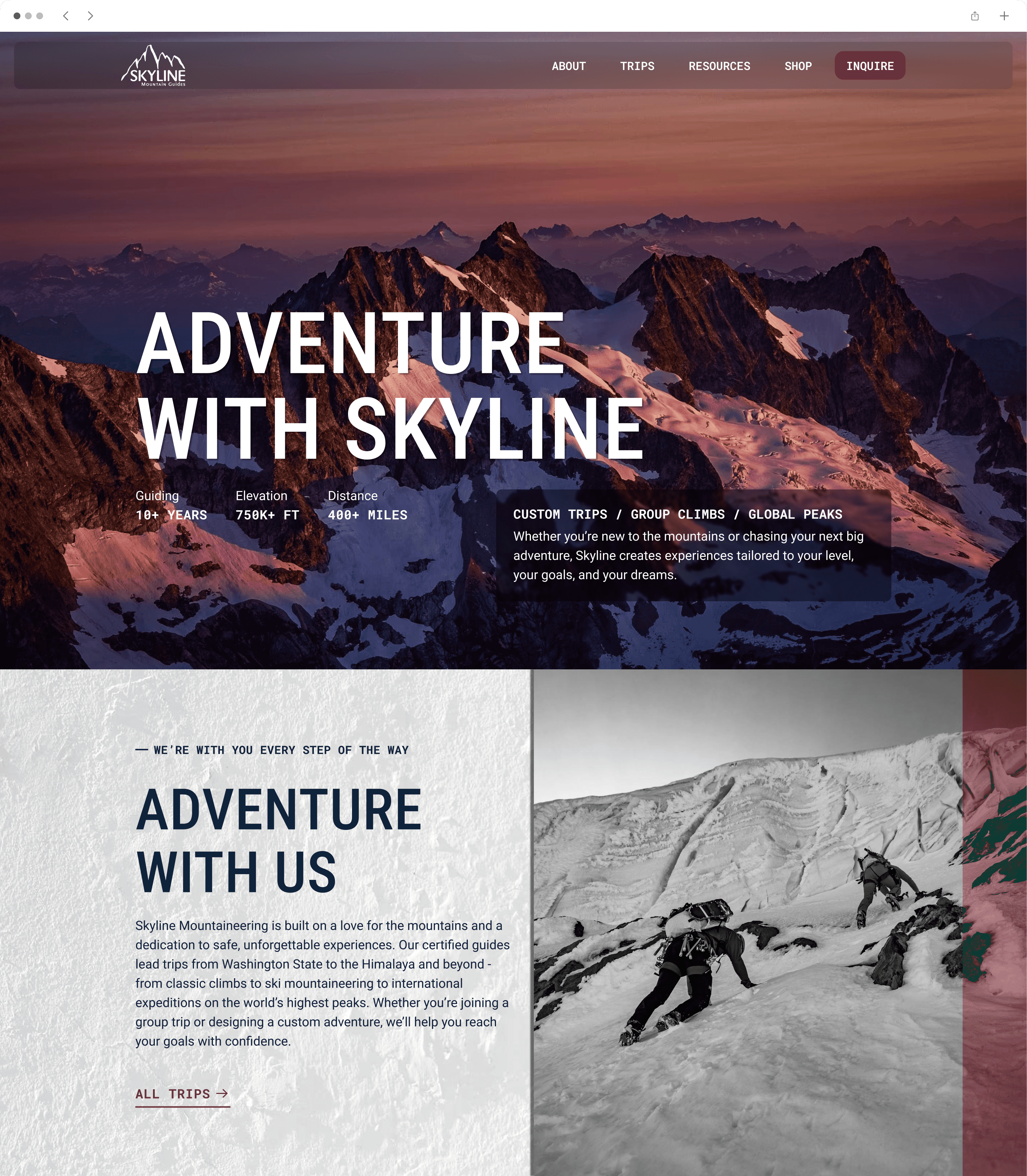 Skyline needed a website that could scale from a few trips to 60+ without manual page builds and make it easy for customers to find the right trip and book online. The goal was to reduce support emails while presenting a premium, trust-first brand experience.